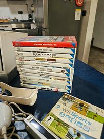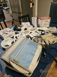 Console Wii completa di tutto con borsa porta cd accessori per giocare a qualsiasi gioco tra cui volanti,pistole,racchette,svariati joystick e molto altro,molti videogiochi,tutti i fili compresi e 2 antenne tra cui una wirless per ricevere meglio il segnalo del telecomando per info e altro contattatemi.