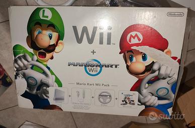 console Wii con scatola, joypad, gioco Mario kart, cavo alimentazione Ha l'attacco anche per i giochi del game cube