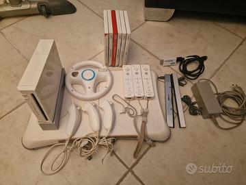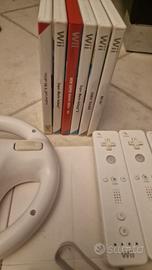 Wii console nintendo completa di scatola, pedana, volante ,3 controller piu 3, 8 giochi ,adattatore HDMI perfettamente funzionante tenuta molto bene .