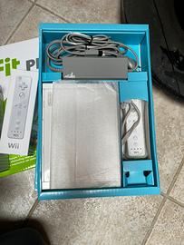 Console nintendo wii completa di imballaggio priginale, manuale di istruzioni, pedana fit plus, 4 controller