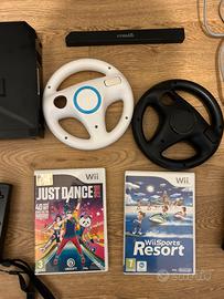 Vendo Wii usata con tutti i cavi, 2 telecomandi con cistodie, 2 volanti. Giochi: Just Dance 2018, Wii Sport Resort
