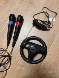 Console Wii Mario Kart Pack completa di kit con volante , joystick, 2 microfoni e 2 telefomandi originali Wii.