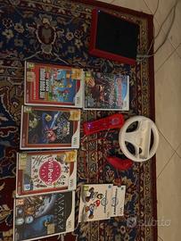 Vendo Wii mini rossa perfettamente funzionante , telecomando compreso , presenta una piccola imperfezione al gommino , ma nulla che va a influenzare negativamente il game play , in dotazione come si può vedere dalle foto il volante di Mario Kart e nunchuk e 6 giochi :