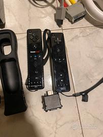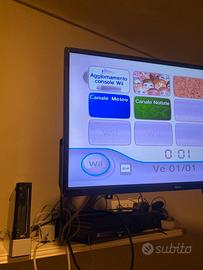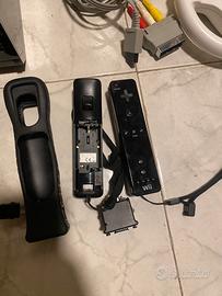 Wii nera in perfetta condizioni completa di accessori. Mancanza di scatola originale accessori inclusi : 2 volanti bianchi 2 controller di cui uno senza coperchio porta pile Nunchuck nero Adattatore esterno nero Sensore ricevitore Svariati giochi