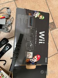 Wii Nintendo “Mario Kart Wii Pack”Tutti gli accessori e gioco Mario Kart visibili in foto , i telecomandi hanno guscio protettivo,più altri 3 giochi:Trivial Pursuit-101in 1 Sport- Wii Party.In ottime condizioni.