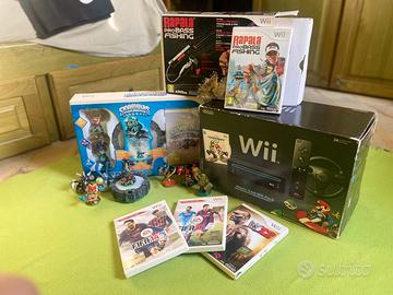 Vendo wii in ottime condizioni , al suo intento 4 giochi rapala fishing, con aggiunta di canna da pesca joistick , 2 joistick , skylander con piu di 10 personaggi e 2 piattaforme , 2 volanti ed altri giochi