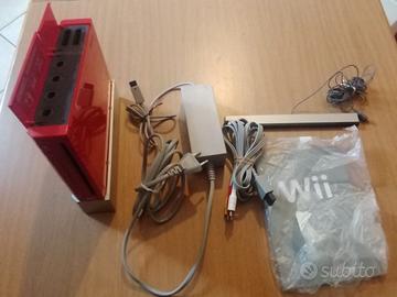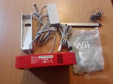 Console Nintendo Wii di colore rosso, con frontalino danneggiato. - Console Wii - Cavo di alimentazione - Cavo AV - Sensore Wii - manuale -Senza i Controller - Funzionante - l unico bottone dello spegnimento non funziona a un filino staccato,per spegnerla va staccato l alimentatore. - Buona per pezzi di ricambio o per sistemarla -Il pezzettino e stato rincollato,alla meglio - Modello: RVL-001(EUR) - Numero di serie: LEF70140974