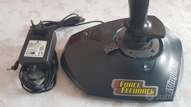 Wingman Strike Force 3D è un joystick di logitech a tre assi e con funzioni di force feedback e dotato di un comando di scrolling posto sulla base nella zona sinistra. La base del joystick è abbastanza ampia e ben bilanciata, tale da permettere una buona stabiltà della periferica anche nelle fasi più intense di gioco. Sul lato destro della cloche è presente un piccolo sensore di prossimità. L'impiego di un dispositivo di questo tipo è reso necessario dalle funzionalità di force feedback. Quando il sensore non rileva la presenza, nella fattispecie, della mano, gli effetti di ritorno di forza non vengono riprodotti; questo per evitare che, durante le fasi di gioco in cui si staccano le mani dal controllo, questo non continui ad effettuare "slang. Sulla cloche trovano posto quattro tasti e due controlli HAT. Dei quattro tasti, oltre al tradizionale tirgger, sono presenti tre tasti, che vediamo nella foto, azionabili con il pollice. I due controlli HAT sono entrambi ad otto direzioni. Alla base della cloche è presente il controllo scorrevole per la manetta della potenza, comando utile per i simulatori di volo, e a sinistra di esso trovano posto due pulsanti e il controllo di scrolling. Quest'ultimo viene riconosciuto come se si trattasse di tre pulsanti separati, rappresentati dalla pressione dello stesso, dalla rotazione in avanti e dalla rotazione indietro. Apparato funzionante e in buone condizioni ancora con imballo originale.