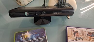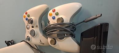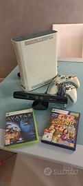 Console Xbox 360 con due joystick con wifi e un cavo in dotazione in caso di batteria scarica, più kinect e due giochi originali