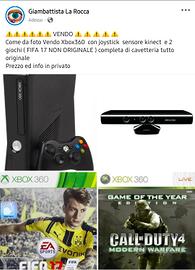 vendo do Xbox360 con joystick, kinect, n°2 giochi per info contatti su whatsapp al 3661417856