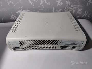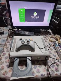 Xbox 360 bianca versione da 60GB, completa di alimentatore, controller cablato e cavo scart, tutto perfettamente funzionante ed in buone condizioni, piccolo danno della scocca nella parte anteriore (come visibile in foto)