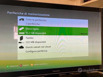 XBOX 360 con il seguente corredo: Forza Motorsport 4 MotoGP 2015 Modulo connessione wi-fi HD da 120 gb Controller originale in ottime condizioni. La console è ok dal punto di vista software, ma ha un problema al lettore, che non fa partire i dischi.