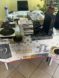 Xbox 360 con 1 controller, telecomando e webcam , alimentatore e giochi ( tra cui bundle dj hero con il relativo controller per giocare ancora con scatola originale). La console ha l uscita hdmi ma fornisco anche cavo component. Unico difetto il tasto di fuoriuscita del cd non funziona, ma si puo aprire con il telecomando o il controller. Vendo tutto in blocco a Milano e provincia. Non spedisco . Prezzo non trattabile.