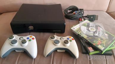 Come in foto, XBox 360 nera con 4 giochi, 2 controllers e cavo video Microsoft originale (RGB - RCA/Scarter).