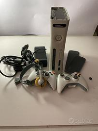 Console Xbox 360 di colore bianco.