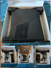 Xbox 360 Slim 4 GB in ottime condizioni completa di tutta la cavetteria, la manualistica e controller originale, nella confezione anche il kinect. Nel bundle è compreso un secondo controller wired ed un lotto di 8 giochi tutti funzionanti. La scatola originale presenta qualche imperfezione ed è inclusa nel prezzo, non sono incluse le 2 pile stilo AA necessarie a far funzionare il controller wireless. Il battery pack del controller wireless ogni tanto perde il contatto e si spegne, il tasto verde (A) è un po' duro. L'analogico sx del controller wired vira un po', la scocca è un po' scricchiolante. Fornisco, a chi interessato, prova video dell'accensione della console, dell'apertura del vano disco, dell'accensione di entrambi i controller e del corretto funzionamento del kinect.