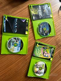 Consolle Microsoft Xbox con pad cavi libretto e confezione oltre giochi Halo prima edizione Tom Clancy’s Splonter Cell prima edizione e Oddworld Munch’s Oddysee classic tutto originale e in perfette condizioni