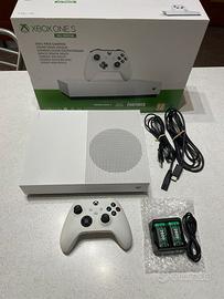 Vendo per inutilizzo Xbox one S ALL DIGITAL - 1tb (edizione senza lettore dischi!!) in condizioni eccellenti. Nessun gioco presente. Controller incluso (NUOVA versione) + 2 paia di batterie ricaricabili con hub di ricarica usb.