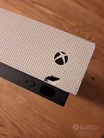 Vendo xbox one s in ottime condizioni, tranne che esteticamente presenta la piccola crepa in foto, i controller sono invece funzionanti tranne i tasto rb e lb che sono un po diffettosi ma comunque giocabile. Fornito di cavi e minecraft