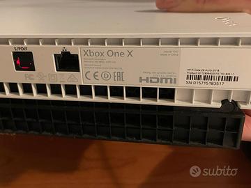 Vendo Xbox One X 1TB bianca in perfette condizioni, completa di due controller (uno nero e uno bianco).