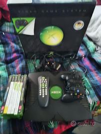 Console Xbox prima serie, scatola giochi e telecomando