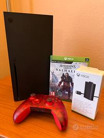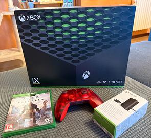 Microsoft Xbox Serie X 1TB Nero come nuova usata pochissimo e tenuta maniacalmente con controller Red Edizione speciale Pulse Cipher + gioco Assassin’s creed Valhalla + Kit batteria ricaricabile + scatola originale e cavi