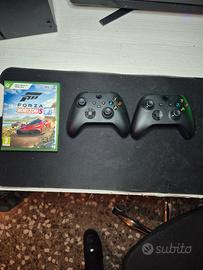Ci vediamo band Xbox serie X. Tenuta perfettamente. Con 2 controlle. Più forza Horizon 5. Tutto funzionante perfettamente. No ora ma mi dica che cosa vi ho detto io ho un batulide allora. Il chiottone è aperto forse