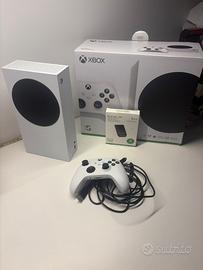 Xbox series S (solo digitale, senza lettore dvd) bianca da 512 gb di memoria interna. Praticamente nuova, utilizzata solo per 4 mesi con l’abbonamento gamepass. Include: -Controller Microsoft Xbox wireless -Scheda di memoria esterna WD Black (ufficiale Xbox) da 1 TB (costo originale, 139€) -cavo HDMI -cavo di ricarica controller -cavo di alimentazione -Scatola originale console -Scatola originale scheda di memoria esterna WD Black