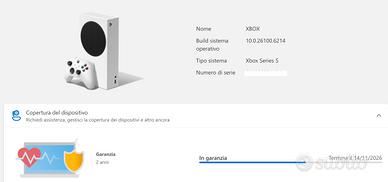 Vendo in condizioni perfette e pari al nuovo xbox series s 512GB. Con scatola, cavo alimentazione e cavo hdmi ultra high speed, tutto originale e in perfette condizioni. Garanzia presso Microsoft fino al 14/11/2026. Prezzo fisso.