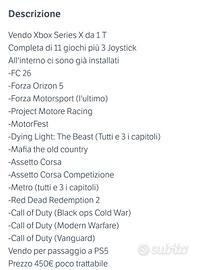 vendo Xbox series x 1t in perfette condizioni! 3 controller originali cuffie 11 giochi come mostrato in foto e all'interno ci sono installati altri 14 giochi (ultime uscite)