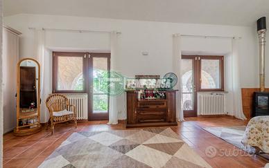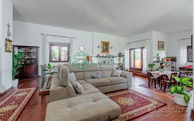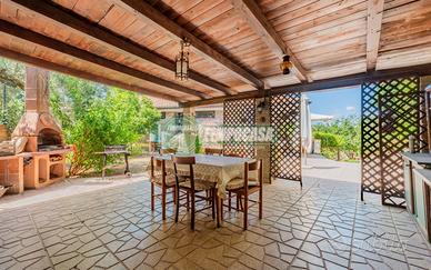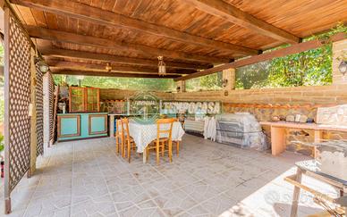 Scopri questa straordinaria villa di circa 300 mq, immersa in un giardino di 2.000 mq, adornato da 10 piante di ulivo, 6 alberi da frutto e diverse piante ornamentali. Questa proprietà rappresenta un'opportunità unica per chi cerca spazi ampi e luminosi, perfetta per due nuclei familiari grazie alla possibilità di suddivisione in due unità abitative indipendenti. Gli interni, con finiture di pregio, offrono un'atmosfera raffinata e accogliente, grazie alla pavimentazione in cotto e alle numerose finestre che inondano gli spazi di luce naturale. La villa dispone al piano principale di un maestoso salone con camino, un'ampia cucina abitabile e tre camere da letto, oltre a due bagni padronali (entrambi finestrati). Al piano inferiore, si trova la seconda unità abitativa, completa di due camere, un servizio e una zona giorno con camino. Gli spazi esterni includono un ampio terrazzo e un patio coperto, ideali per godere della tranquillità del giardino. La costruzione è stata edificata nel 1990 con cappotto termico e doppia intercapedine, e l'ultima ristrutturazione risale allo scorso anno. La proprietà è dotata di riscaldamento autonomo con gpl, con due caldaie (una dedicata al solo riscaldamento e l'altra per i servizi) e aria condizionata, infissi nuovi con triplo vetro e zanzariere. Questa proprietà offre un comfort moderno in un contesto naturale. Non perdere l'occasione di vivere in un luogo dove eleganza e funzionalità si incontrano. Contattaci per maggiori informazioni e per prenotare una visita! Questa descrizione ha carattere puramente indicativo e non costituisce elemento contrattuale. - Classe: G