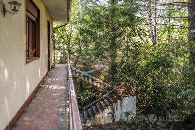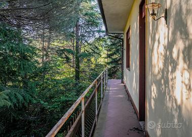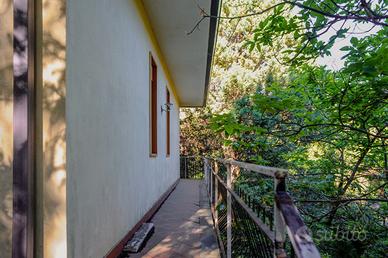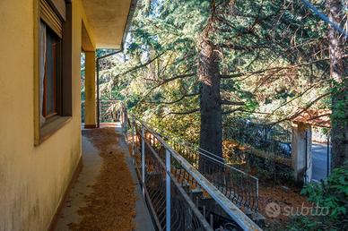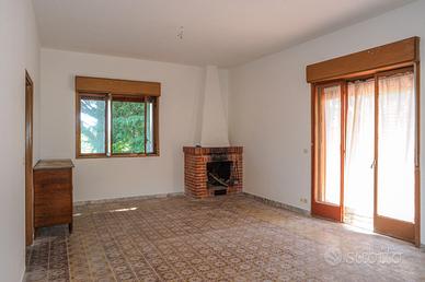 All'interno, l'abitazione si compone di un luminoso salone doppio con camino, due camere da letto, un bagno e una cucina semiabitabile, facilmente collegabile al salone grazie alla parete comunicante. I balconi perimetrali si affacciano sul verde del giardino, impreziosito da alberi ad alto fusto.