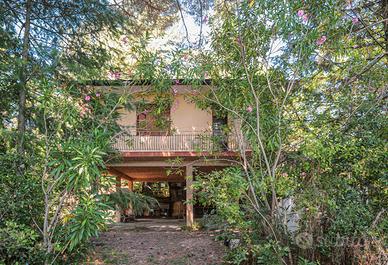 La villetta, realizzata negli anni '70, è sopraelevata su pilastri, caratteristica che consente di sfruttare lo spazio sottostante in base alle proprie esigenze. È prevista una ristrutturazione per l'ammodernamento degli ambienti.