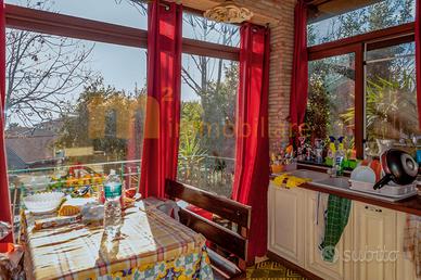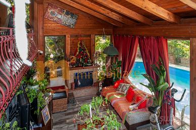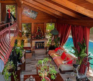 La villa è costituita da una struttura in muratura di 90 mq, 3 vani, e una veranda accorpata rifinitissima in travi lamellari e vetri antiintrusione che ne caratterizzano un unico ambiente abitativo con tutti i confort.