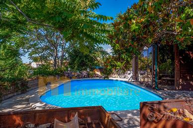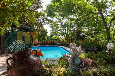A Pedara, in zona ristorante Belladonna, l'Agenzia Metroquadro Immobiliare propone in vendita una villa singola panoramica con circa 950 mq di spazio esterno con: rifiniture in pietra lavica, una piscina interrata, ampie fioriere rifinite in stile siciliano, spiazzale con posti auto più garage.