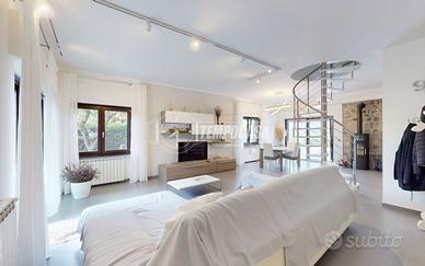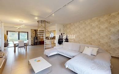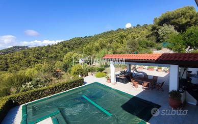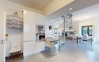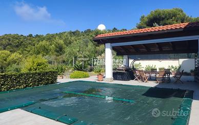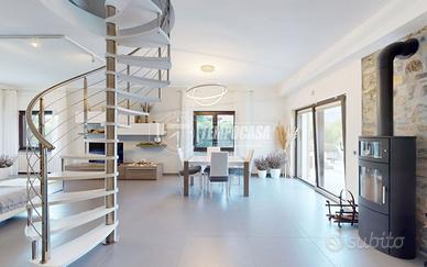 La villa si sviluppa su tre livelli. Al piano terra troviamo un ampio e accogliente salone con cucina a vista, ideale per momenti di convivialità, oltre a un bagno di servizio. Salendo al primo piano, la zona notte offre tre camere da letto, due bagni e una sala aggiuntiva, perfetta come zona relax o studio. All'ultimo piano, un ampio sottotetto si apre su uno straordinario terrazzo con vista panoramica sul mare, un angolo suggestivo dove godersi tramonti mozzafiato in totale tranquillità.