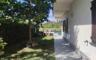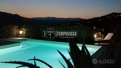 All'esterno, la proprietà è circondata da un ampio spazio esterno curato, dotato di zona barbecue sotto tettoia, perfetta per pranzi e cene all'aperto, e una piscina privata che completa l'esperienza di comfort e relax.