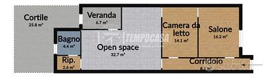 All'esterno troviamo un cortile privato, che garantisce privacy e versatilità d'uso (giardino, area barbecue), oltre a un terrazzo di copertura con accesso dal cortile esterno, ideale per godersi il sole, organizzare serate estive o allestire un solarium.