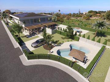 In Località Piano di Guardia a Terrasini, a pochi metri dalla spiaggia di San Cataldo, disponiamo di due porzioni di ville all'interno di una villa quadrifamiliare in costruzione con consegna prevista per Dicembre 2026. Ogni porzione di villa è indipendente e dotata di: ampio spazio esteno con pergolato, giardino, piscina in vetro resina, posti auto, cancello d'ingresso, illuminazione esterna, recinzione con muretto in C.A. e ringhiera in ferro verniciata. Piano terra conposto da: veranda, cucina, soggiorno, antibagno e bagno, ripostiglio; primo piano con tre camere di cui 2 con cabina armadio, bagno, balconi, terrazzo con tettoia. Ogni porzione è dotata di impianto elettrico completo, predisposizione impianto allarme e videosorveglianza, videocitofono, impianto fotovoltaico da 4 kw, predisposizione impianto di climatizzazione e riscaldamento con caldaia, acqua calda con pannelli solari, cisterna idrica e fossa imhoff indipendente dalle altre porizioni di villa. Per ulteriori informazioni e/o per fissare un appuntamento contattare il nostro ufficio al numero o al dal lunedì al venerdì dalle ore 09:00 alle 13:00 e dalle ore 16:00 alle 19:00.