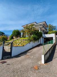 In posizione tranquilla e riservata, vendesi splendida villa singola di 266 mq commerciali, circondata da un ampio giardino di 670 mq piantumato con alberi da frutto, castagni e ulivo. La proprietà si trova in perfette condizioni, senza necessità di lavori, e dispone di accesso indipendente con strada privata e spazio per parcheggiare fino a 4 auto, oltre al box doppio. ? Composizione: o Piano terra: ampio soggiorno con camino e aria condizionata, cucina abitabile, bagno di servizio. Accesso diretto al giardino da 5 porte-finestre. o Primo piano: tre camere da letto, tutte con balcone; bagno padronale ampio, oltre a bagno privato con doccia nella camera matrimoniale (dotata di aria condizionata). o Piano taverna (81 mq): con accesso diretto al garage, piccola cucina attrezzata, grande bagno/lavanderia con vasca e doccia, camino e locale tecnico con caldaia Vaillant nuova. o Box doppio (39 mq) con basculante automatizzata nuova. o Terrazzi e balconi: 113 mq totali. ? Dotazioni e comfort: o Impianto di riscaldamento completamente rinnovato, con nuove pompe e attacchi caloriferi. o Termostati indipendenti per ogni piano. o Impianto d'allarme di ultima generazione, videocamere e luci esterne con sensori di movimento. o Aria condizionata in soggiorno e nella camera principale. La villa è in condizioni impeccabili e pronta per essere abitata. Prezzo : 700.000, 00 euro