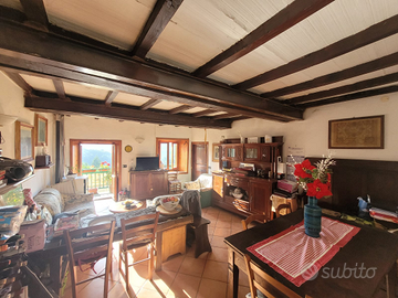 Vendo casa a schiera di 140 mq + 1000mq a verde. 6 stanze, cucina con caminetto e bagno sottotetto da attrezzare a mansarda, + locale sottostante ma 50 con 2 vani e bagno. Giardino con legnaia e forno a legna con possibilità di realizzare posto auto