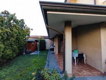 In prossimità del centro di Azzano X su strada chiusa al traffico, proponiamo una graziosa villetta bifamiliare degli anni '80 disposta su due livelli; dagli spazi vivibili, confortevoli e funzionali. Il giardino circonda sui tre lati l'immobile con un ampio porticato adibito a posto auto e un altro portico ideale per trascorrere del tempo in compagnia. Al piano terra troviamo una cucina abitabile, un soggiorno, una comoda taverna con caminetto e con accesso al portico, un bagno di servizio, la lavanderia con centrale termica e una stanza adibita a studio con ingresso indipendente dal giardino. Al primo piano su livelli sfalsati ci sono tre camere matrimoniali, due bagni, una cabina armadi e una quarta stanza mansardata.
