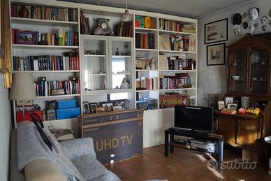 L'immobile e' composto da n°2 appartamenti; un appartamento bilocale di mq. 50 al piano terra, ed un appartamento trilocale, disposto su due livelli (p. 1°+mans.), composto da soggiorno, cucina, disimpegno, doppi servizi, due camere, balconi, n°3 posti auto scoperti e piccola area di pertinenza di mq. 150.
