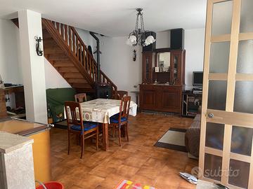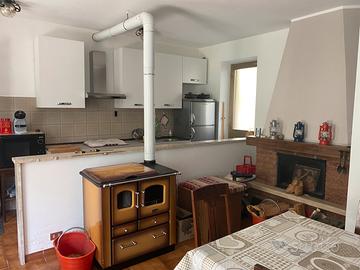 Il piano terra è dedicato alla zona giorno. L'ingresso principale conduce direttamente al luminoso soggiorno, caratterizzato da un rustico caminetto, perfetto per le serate invernali. Dietro al muretto si trova l'angolo cottura a vista, un ambiente ben attrezzato. Inoltre il piano terra è dotato di un piccolo bagno di servizio. La scala interna in legno conduce al piano primo dove si trovano due camere da letto e il bagno. Ogni camera si affaccia su balcone che offre vista panoramica sulla vallata. Il cortile è recintato e chiuso, con servitù di passaggio a favore del vicino di casa (con rari passaggi essendo un accesso secondario). L'abitazione è abitabile da subito. Prezzo trattabile.