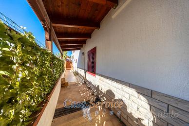 Il piano rialzato accoglie l'abitazione principale ed è caratterizzato da un doppio portico, perfetto per cene all'aperto e momenti di relax. All'interno troviamo un ingresso accogliente, un ampio soggiorno, una luminosa sala da pranzo, un cucinotto funzionale e ben organizzato, tre camere da letto confortevoli e due bagni.