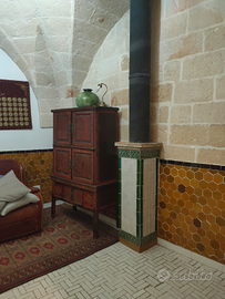 h'essi raggiungibili a piedi (Lidl Eurospin). Disponiamo di doppio ingresso direttamente su Open space . Subito la casa emana tranquillità e allo stesso tempo un'atmosfera calda e accogliente. Luce,calore e spazio . Il soggiorno è un luogo dove rilassarsi all' istante mentre il pavimento in legno e il grande camino creano un'atmosfera calda. Qui' potete rilassarvi accanto al fuoco e godervi la magia della fiamma. La cucina a pianta aperta completa perfettamente il tutto. Al piano superiore (zona notte) troviamo due camere da letto con bagno, doccia, salone centrale con stufa a legna. Nello stesso piano si trova la caratteristica balconata ottocentesca (la più fotografata dai passanti) . Da una scala interna, si accede ai due splendidi terrazzi, intervallati da usa sala lettura e/o tè. Il bellissimo mar Ionio lo troviamo a circa 10 km.