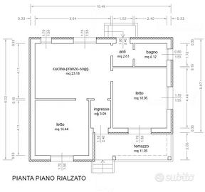 L'immobile, completamente ristrutturato nel 2023, si sviluppa su un livello rialzato di tre gradini ed è composta da atrio di ingresso, zona giorno con angolo cottura di 24 mq dalla quale si accede a due comode camere matrimoniali da 16 mq e da 20 mq, da un antibagno e bagno finestrato da 2,50 x 1,70 m e da terrazzo. L'edificio può essere ampliato per ricavare un ulteriore locale 4,00 x 4,00 m e un secondo bagno.
