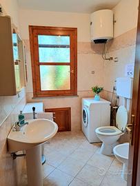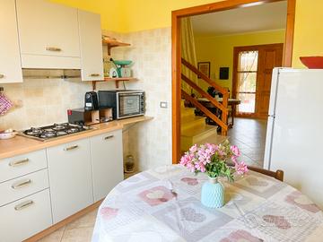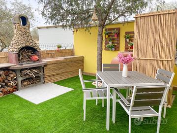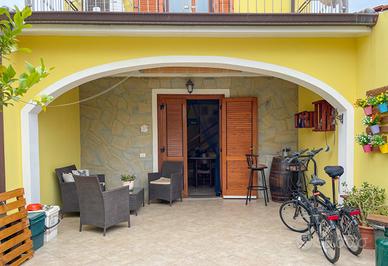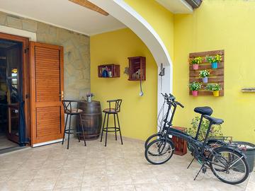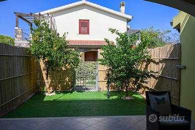 Proponiamo in vendita una splendida casa a schiera situata nel cuore di Castiadas, ideale per chi cerca tranquillità e comfort senza rinunciare alla vicinanza ai servizi principali. L'immobile si sviluppa su due livelli ed offre una superficie generosa di circa 80 mq commerciali, perfettamente distribuiti per garantire spazi funzionali e luminosi. L'immobile dispone di due giardini separati, uno nella parte posteriore e uno in quella anteriore, delimitato da staccionata naturale che assicura privacy, arricchito da alberi da frutto e piante ornamentali; la zona verde è perfetta sia per il relax che per momenti conviviali all'aperto. Il patio coperto, ampio e rifinito con pavimentazione moderna, ospita comode sedute dove godere delle serate estive o sorseggiare un aperitivo. L'ingresso principale conduce direttamente nella luminosa zona giorno tramite porte-finestre in legno dotate di persiane; la facciata color giallo caldo dona carattere mediterraneo all'abitazione mentre i dettagli come le pareti rivestite in pietra naturale aggiungono valore estetico. Completano il piano terra la cucina separata abitabile ed il bagno. Al piano superiore si accede alla zona notte composta da due camere da letto e ad un secondo bagno. Dalla camera matrimoniale si ha accesso ad un terrazzo vivibile con vista sul contesto residenziale tranquillo della zona. La proprietà non prevede spese condominiali e rappresenta una soluzione ideale sia come prima casa che come investimento per vacanze data la posizione strategica vicino alle più belle spiagge del Sud Sardegna tra le quali Costa Rei, Cala Sinzias e Cala Pira, oltre che ai principali servizi locali. Non perdere l'occasione di vivere immerso nella natura ma a pochi minuti dal mare! C.E.: D IPE: 110.33 kWh/mq
