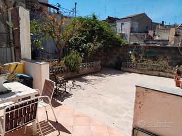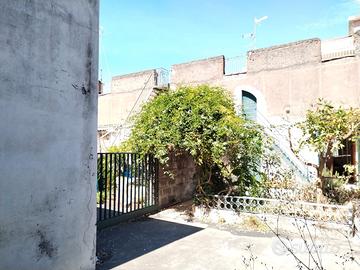 Acireale centro,zona servita,ma tranquilla,casa singola unico livello con doppio ingresso singolo pedonale e carraio, suddivisa in: ingresso salone vani 2,disimpegno,3 camere,cucina,servizio e ripostiglio,terrazzo panoramico sovrastantee ampio cortile con deposito mq 70.Immobile mutuabile,luminoso,in discrete condizioni.