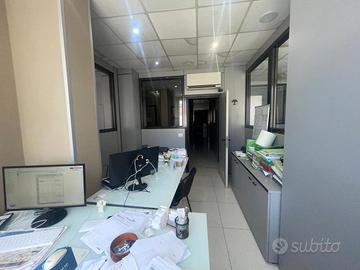 Primo piano: - Di complessivi mg 189,00 destinati ad ufficio, le divisioni interne, ad eccezione dei servizi igienici, sono realizzate con tramezzature prefabbricate facilmente rimovibili o spostabili.